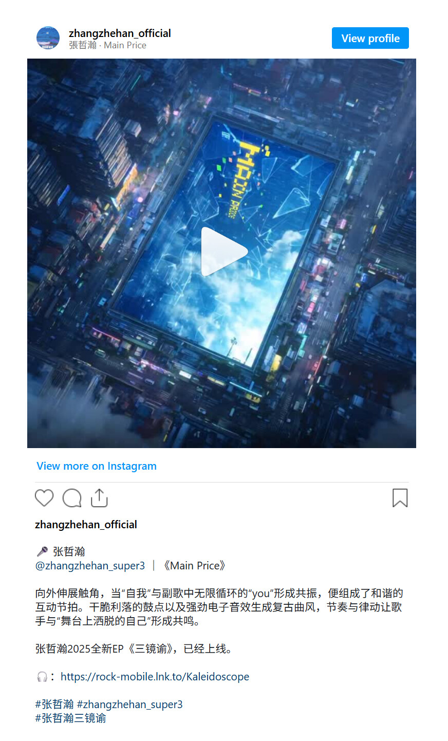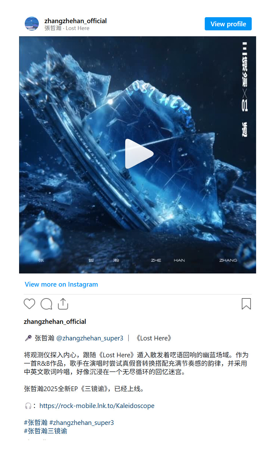 Zhang Zhehan’s new EP Kaleidoscope (end of 2025) collects the pieces. Three singles, like three glass panels forming a prism. Each track watches the self from a different angle.