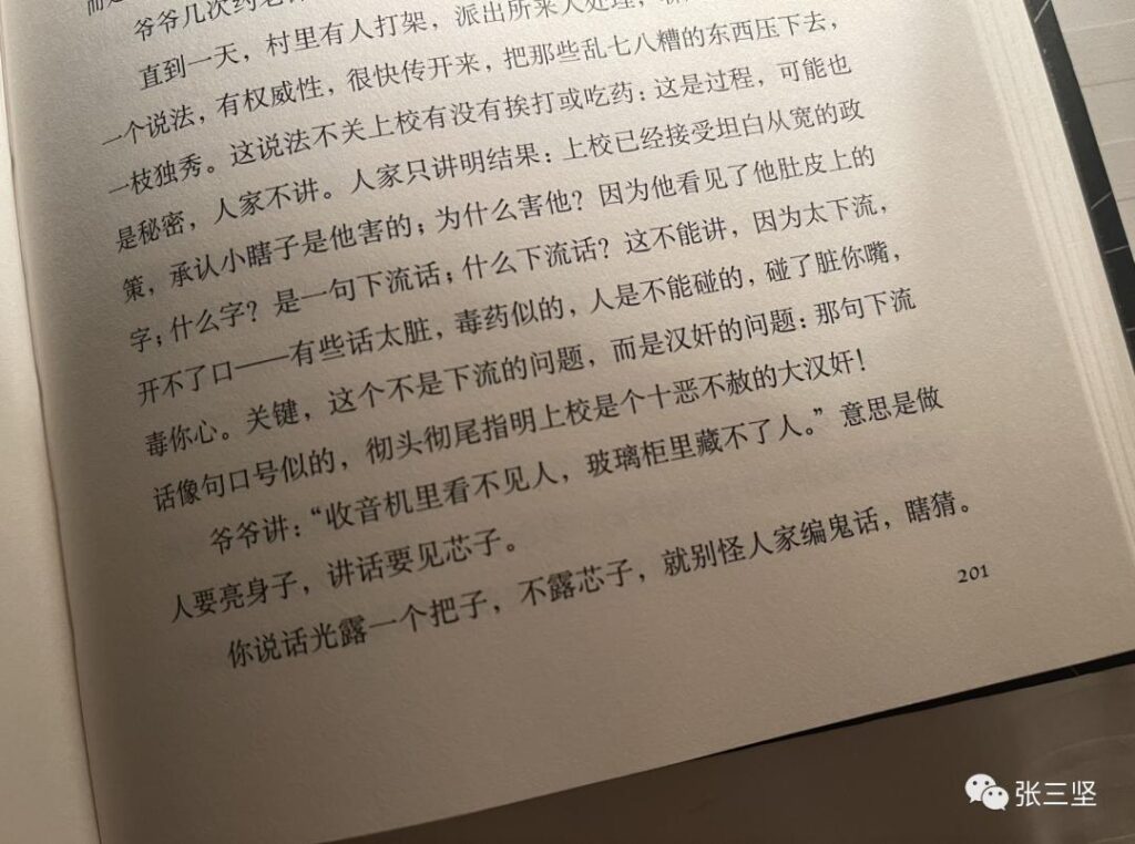 I suppose, for him, this may have been a good ending. Facing life and death in the national war, experiencing life’s ups and downs in the workplace, and enduring the cruelty of human nature in the village, ultimately returning to childhood might have been a form of liberation and redemption for him.