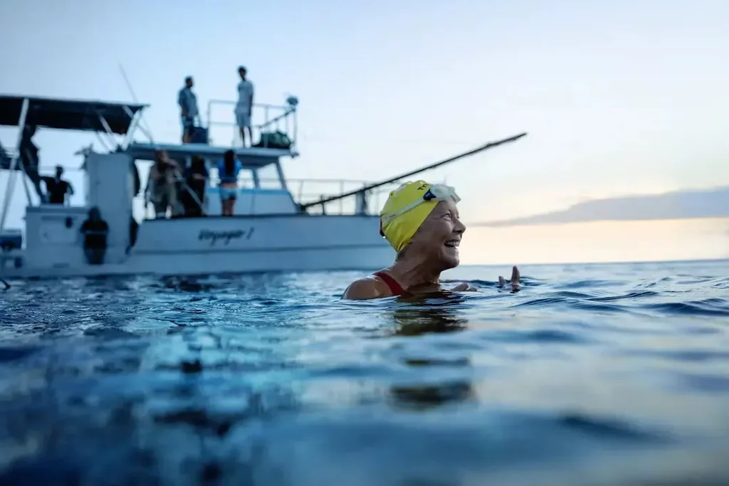 最近看了一部游泳题材的电影《泳者之心Young Woman and the Sea》,不知道片名是不是致敬了海明威的《老人与海The Old Man and the Sea》,影片主角是一位年轻的美国女孩特鲁迪,她在1926年成为史上第一位游泳横渡英吉利海峡的女性。提到体育片类型,可能第一反应能想到的冲突点是竞技体育的真实与残酷、人与身体的极限对抗、或者热血励志的情节、分毫间逆转的刺激。除此之外呢,这部影片里主角所面对的有性别和种族的歧视、以及幼年时患下轻度耳聋的身体残疾,所谓从内在条件到外界环境的多重阻碍。而关于女性如何打破时代禁锢、刻板偏见和歧视的桎梏,在之前讲《隐藏人物》时,有写到独立女性智慧的光辉与热血,和从困境中自我解放并团结的历程。作为女性题材商业传记片,影片具有着一部优秀的体育电影所需的所有公式。同时,作为Disney出品的电影,剥开坚实残酷的竞技性外壳,影片多了一些柔软治愈的核。母亲的坚持、姐姐的陪伴、女教练的信任形成荆棘丛里托举起特鲁迪的臂膀,她从锅炉房里的游泳池游到大西洋,游到奥运会赛场,最后站在了英吉利海峡的岸边。泳程约34公里,伴着这一天的熹微晨光,她在自己呼吸声中,望向汹涌的海面,步入海中。穿过一大片红色水母群后,身上已满是被蜇伤的血红印;遇强劲海流,在冷冽的海水中透支了体力;又遇浓雾,船只被推上浅滩,最后5英里没有船引导,她在凝得像墨一样的目之所及里,迷失在深海与深夜,四处张望全然是漆黑一片。“她要怎么找到方向?”低沉宏大的音乐将情节推向高潮,四肢被冻得僵硬的特鲁迪,已失去方向了许久,她疲惫不堪地在海水里漂荡,当她转过身去找寻一点点希望时,多佛岸上闪着微光,人们在长长的崖边燃起了篝火,从星星点点的光亮到山顶的熊熊火光,为她照亮彼岸的方向。“全世界都在静候佳音。”也许等的是信仰的回复,绝处的逢生,明知不可为而为之的近乎偏执的勇气,大家为她亮起火把,也燃烧着每个人心中那个大胆疯狂的、不被别人理解的麦田,去逐时代的潮水与麦浪。我看完同样觉得鼓舞与振奋,所谓竞技精神与坚韧的意志力就是哪怕相隔漫长的岁月与遥远的距离,但仍旧会身临其境般深受触动。有了情感,总会产生投射,于是不禁想起我的游泳历程,那是一段“我曾经离开家和爸妈,也喝过池塘与水库”的坚强之路初体验。记得小时候我一直很怕水,甚至在洗澡用淋浴喷头时,都恐惧水柱喷出来的瞬间,但在产生这种心理生理害怕的触角前,我其实从未下过任何的游泳池或池塘小河。要问为什么,多亏了家里人孜孜不倦、坚持不懈地讲故事——那些河里水怪、落水被水草缠住等等故事。水——就此在我幼小的心灵立起了坚实的屏障。过了几年,叛逆心性微微冒头,因想学艺术与家里人产生争执,也干出了离家出走这种事情(错误示范,请勿效仿)。我坐上了往乡镇开的大巴车去找同学,当时村子里都是一户一户的土房子,我就在这家住两天,那家住几天,到饭点就拿着碗坐在小马扎等着放饭。村子附近有一条河,这些同学自小长于此,自然全都会游泳。一天午后,天气炎热得很,我们从田地里走到河边,看到一群小孩往河里扎猛子,于是我的同学们开始纷纷脱上衣往河里冲,上头的我也跟着一起跳进河里。飞跃的过程很雀跃,但沾到水的瞬间才教人老实,我不会游泳啊!但已经来不及了,旱鸭子落水的本能是强烈求生欲促生的瞎扑腾,两脚直踩水,嘴里狂灌水,同学们一边挨我的乱拍飞踢,一边来捞我,最后一点点给我拖到岸上。这就是我的游泳首秀,鞠躬,谢幕。🤐到了十七八岁,年少的自尊心和不服气让自己暗下决心一定要克服恐惧,学会游泳。当时新余开了一家水上乐园,小孩在水上滑梯区玩耍、大家游累了就在亲子区“泡澡”。我在深水区自己练习,水深是垫着脚能到鼻子的高度,正好可以呼吸,于是憋气、划腿、抬头、糟糕忘换气了、划水、没气了,哐哐吞水……那时候不知道喝了多少游乐园的水,每天游完,回家就是拉肚子,循环往复,不标准不规则式蛙泳总算被咱学会了。今年尝试了自由式潜水,潜到10米左右的深度去找鲸鱼,刚开始看到这些海底巨型生物就出现在身边时,被一种不真实感侵袭,这些生物离我们的日常那么遥远,所以开始会有绝对真实的恐惧。慢慢地,开始跟它们一起玩,听鲸歌,就这么静静观察着它,看它们沉在水下睡觉,它们对人没有攻击性,甚至在它们休息时,我会刻意保持着距离,听说如果它们睡醒看到身边有个人出现,也会大吃一“鲸”。看完《泳者之心》后,同时关注到了一部同游泳题材纪录片《奈德》,两部片子上映时间相隔不远,也都是女性长距离跨海游泳事件。惊喜的是,《奈德》在银幕上和幕后团队合作上,舍弃了很多可以使用的公式和讨巧细节,这点让我很钦佩,不断地累积会让人强大,但主动摒弃不失为另一种坚定和勇敢。《奈德》拍摄团队是伊丽莎白柴和金国威夫妻俩,作为以拍摄纪录片见长,曾获奥斯卡最佳纪录长片的华裔夫妇,在《奈德》拍摄上,更倾向于以最大程度的真实为观众剖开画面,更专注于游泳本身这项运动以及两位主人公之间的关系对撞,两位女演员,朱迪·福斯特和安妮特·贝宁演绎着两位主角的核心友谊,再到因观念不同分道扬镳,最后携手共渡。真诚的演出非常有厚度和质感。回到影片,主人公奈德年轻时是一名马拉松游泳运动员,退役