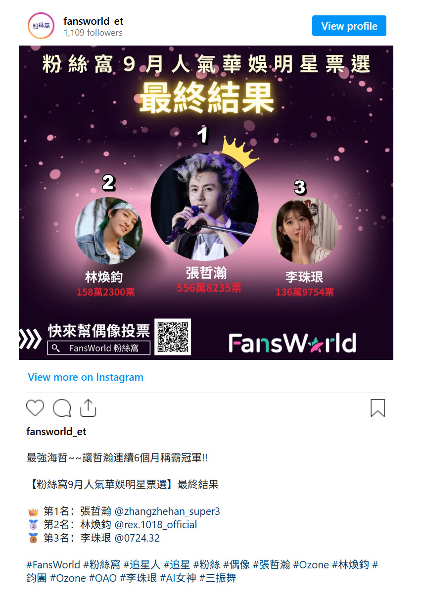 ETtoday’s Popularity Poll – Zhang Zhehan Reign As Champion for Six Consecutive Months