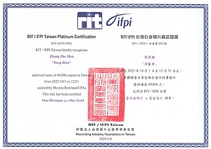 “Deep Blue” received the RIT/IFPI Taiwan Platinum Record Certification
