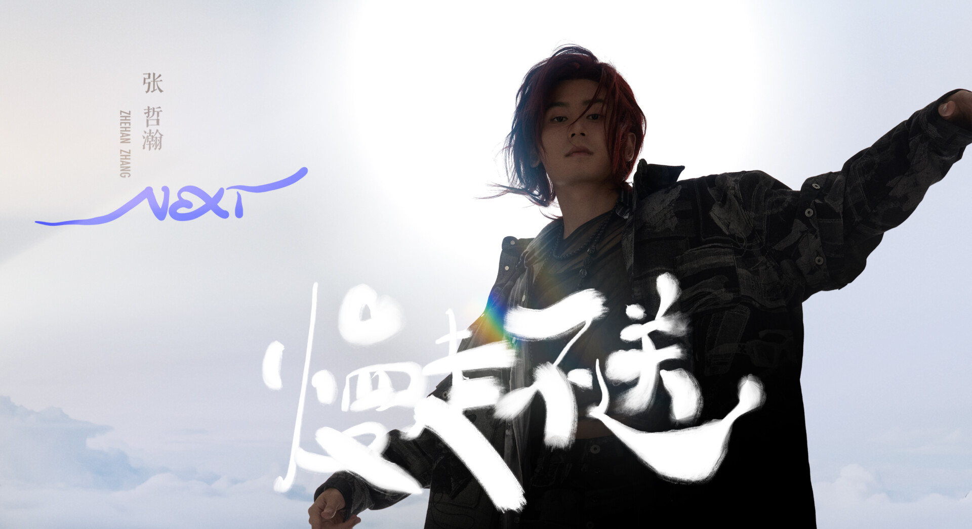 In terms of the visual presentation for this single, Zhang Zhehan tries out a deep scarlet long hairstyle for the first time. Watching the hairstylist gradually snip away the ends of his hair feels like saying goodbye to the past in another form. The cover features a soft, milky white background and font colors that fade like clouds, contrasting with the deep gray-black of his outfit. This contrast reflects the boundary between reality and illusion, consciousness and the subconscious—just like the song’s sharp and decisive tone. When one sees through the false performances and insincere attempts to hold on, it’s best to say farewell gracefully. Goodbye, next.